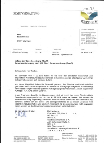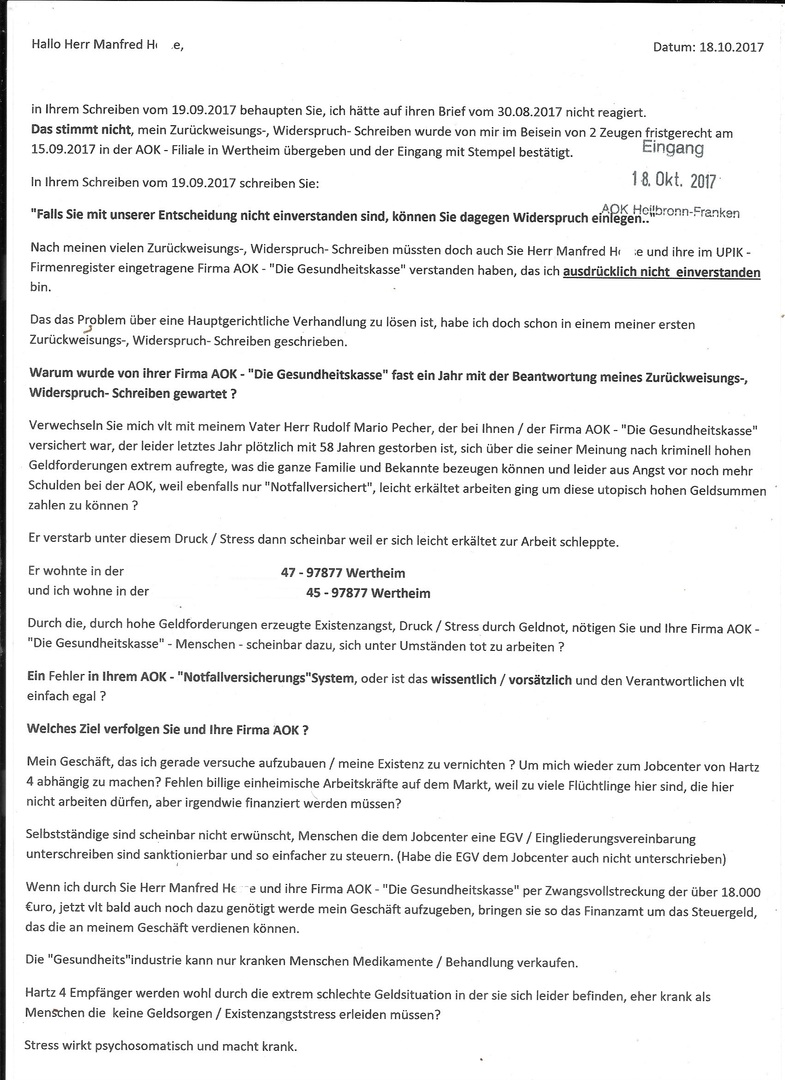 Waren diese Schreiben das Todesurteil für die Existenz des scheinbar ca. 29 Jahre lang zuverlässigen, selbstständigen Dachdeckermeister Rudolf Pecher - "Rudi" ?